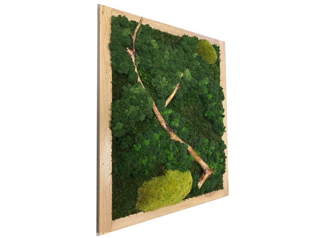 - Obsah obrazu: Stabilizovaný kopečkový, plochý a sobí mech v kombinaci s lakovaným borovicovým dřevem