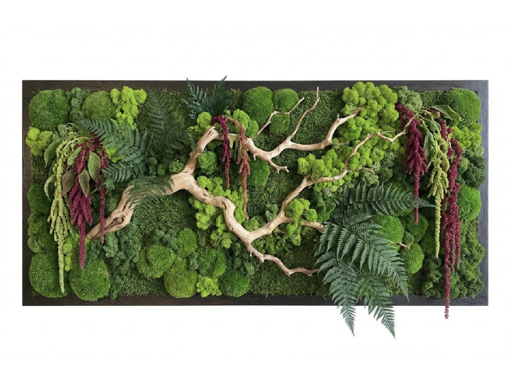- Každý obraz je originál (jedná se o přírodní produkt) - design je však dodržován podle předlohy. Menší obrazy disponují poměrově menším množstvím mechu a rostlin.