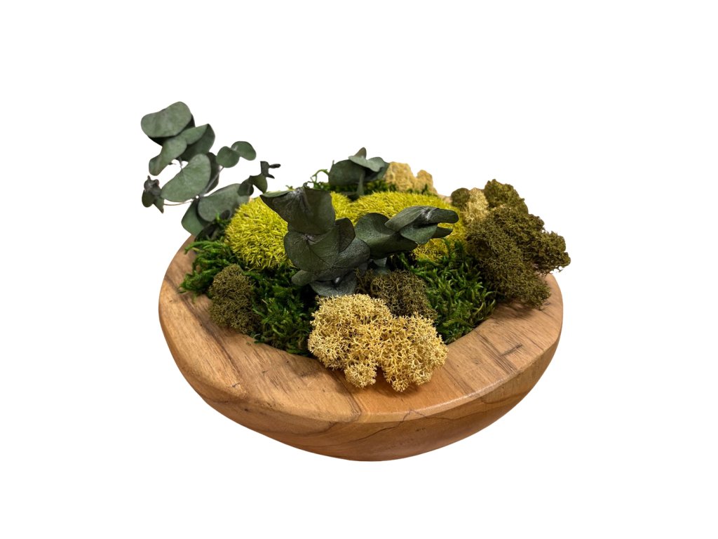 - Teaková miska se stabilizovanými Eukalyptem a mechem 20 cm